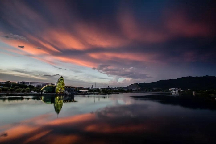 09.因?yàn)榘頃r分,東江灣的天空彩霞似錦,美得讓人心醉。