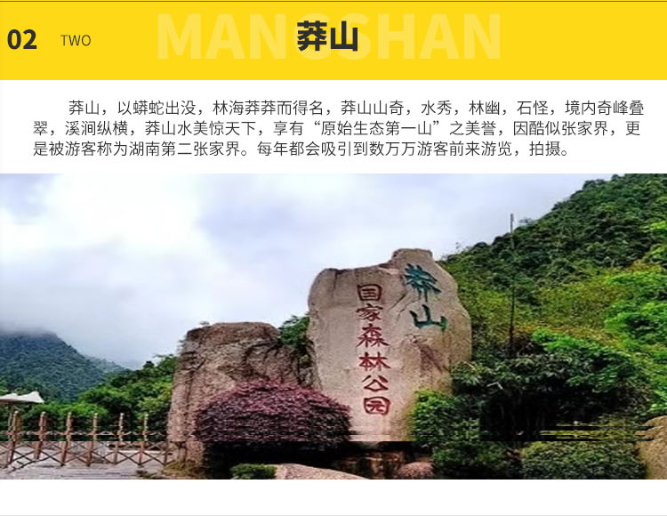 中國(guó)原始生態(tài)第一山,一山夸二省,被譽(yù)為第二西雙版納,第二張家界,莽山是國(guó)家森林公園、國(guó)家地質(zhì)公園、國(guó)家風(fēng)景名勝區(qū)、國(guó)家AAAA級(jí)景區(qū)。