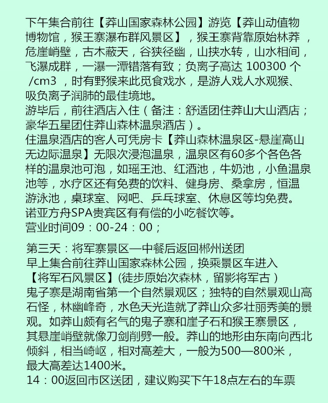 DAY3:莽山景區(qū)---中餐后返回郴州市區(qū),約16點(diǎn)左右抵達(dá)