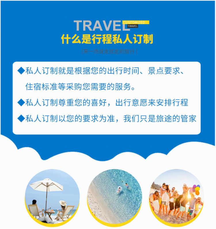 3.本行程必須身體健康且有自理能力的客人參加此線路,中老年人尤其是患病者參加旅游,需如實向旅行社提供健康信息,并根據(jù)自己的健康狀況量力而行,如游客感覺身體不適,請馬上告知導游,因游客身體原因產(chǎn)生的一切后量與責任,旅行社概不承擔。