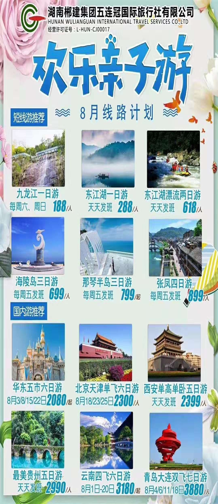 8月郴州旅行社組團(tuán)產(chǎn)品