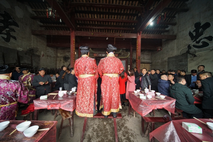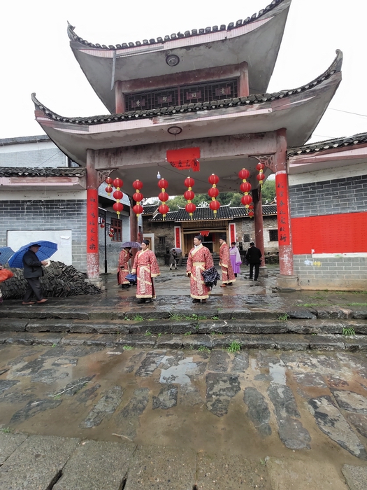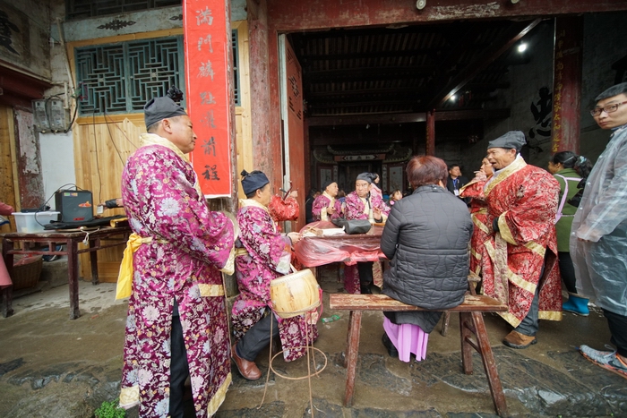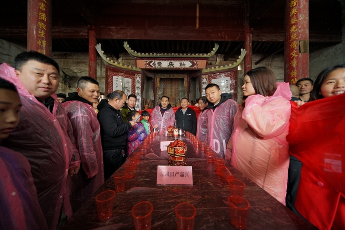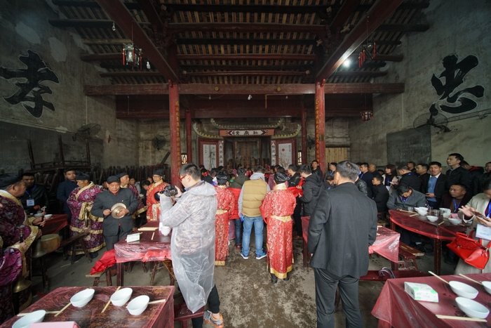 近日有瀟湘晨報湖南省紅網(wǎng)攜手東風(fēng)日產(chǎn)來郴組織的自駕游活動及東江湖環(huán)保行動。23日清晨自駕游車隊(duì)從長沙城區(qū)浩浩蕩蕩的開往了本次活動的永興板梁古村,參加本次活動的共計(jì)有21臺車輛50余人。臨近中餐車隊(duì)順利抵達(dá)板梁古村,熱情的板梁村民準(zhǔn)備了永興當(dāng)?shù)卦嫉慕哟Y儀--周禮古宴。周禮古宴源于周朝的一種宴席禮儀,其淵源可追溯到周朝“三禮”之《儀禮》,經(jīng)過千百年流變,宴禮仍保留著《儀禮》的主要程式,板梁古村挖掘整理出這一非遺文化遺產(chǎn)后穿越千年再續(xù)遺風(fēng),“周禮古宴”儀禮分接客、宴客、送客三部分,儀禮班子由司禮、司樂、司廚三部分組成,每逢行古宴之禮,村頭接龍橋上,行禮司儀會頭戴一字巾帽、身穿醬紅袖衫的歡喜迎客,吉祥童子則身著圓領(lǐng)彩衣的列隊(duì)行鞠躬禮??腿税撮L幼職序從上至下入座,祖廳傳杯,祝酒四杯,賀詞四輪。宴席三亭到位(寓意步步高升),大樂三曲為篇,唱贊三合成章,敬酒三巡成禮,菜肴三三加一。菜肴融合了粵菜、徽菜、湘菜的特色,號稱“十碗葷”。固定的菜名、固定的上菜順序。是永興鄉(xiāng)間重大慶典活動必遵的綜合性民俗儀禮。也是迎接貴賓尊貴儀式。