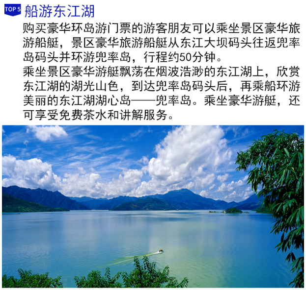門票內(nèi)容:含小東江,龍景峽谷,東江湖,兜率靈巖溶洞,車觀猴古山瀑布,東江大壩外景,景區(qū)車及船票