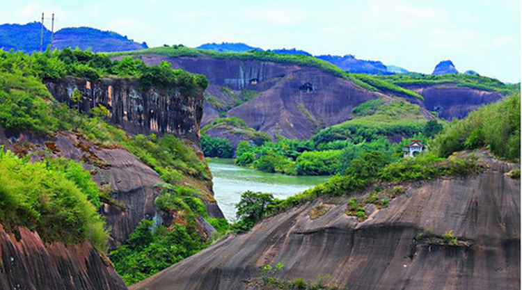 飛天山國家地質(zhì)公園位于湖南省郴州市蘇仙區(qū)境內(nèi),距市區(qū)18公里,總面積約110平方千米,以丹霞地貌和喀斯特溶洞為主要特色。公園主要為寨(堡)丹霞地貌類型,紅巖綠水,赤壁丹霞,峽谷奇洞,組成了四面青山列翠屏,草木花光盡是香的奇異的丹霞地貌景觀。